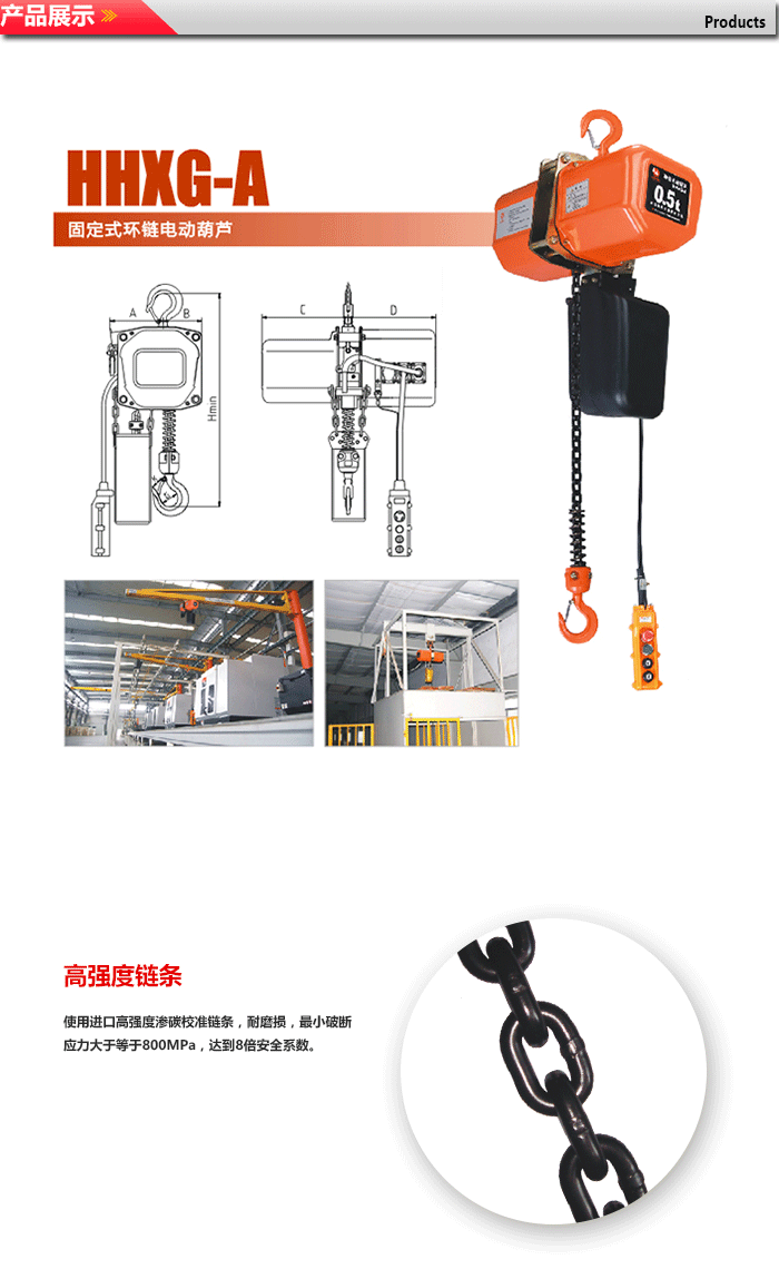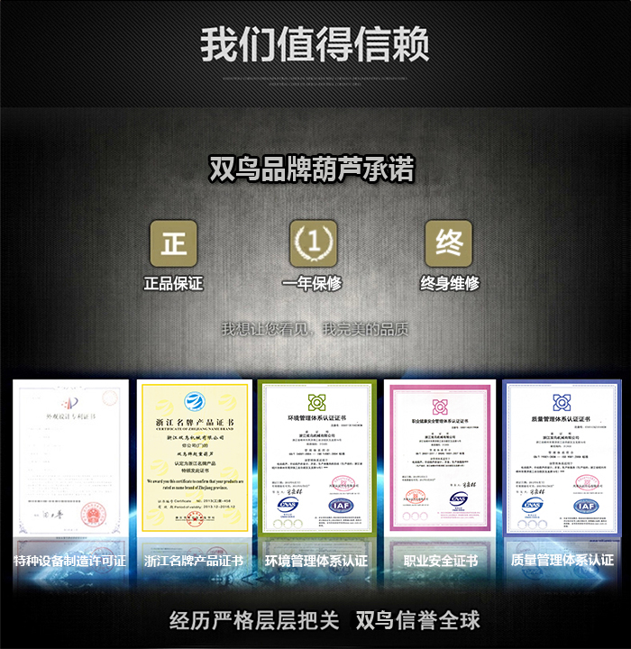 8.起重链条是特殊合金钢制作并经过热处理,不能私自进行焊接或改装。