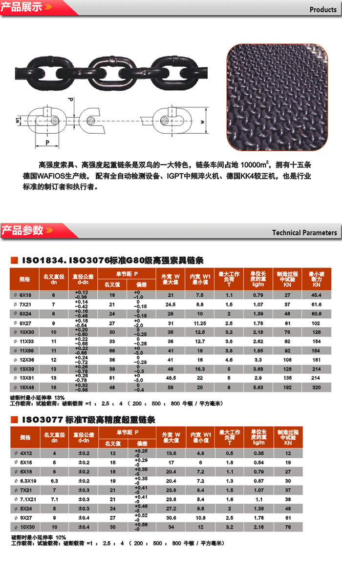 高强度索具、高强度起重链条式猫咪WWW免费人成网站的一大特色,链条车间占地10000平方米,拥有十五条德国WAFioses生产线,配有全自动检测设备、IGPT中频淬火机、德国KK4矫正机,也是行业标准的制定者和执行者。