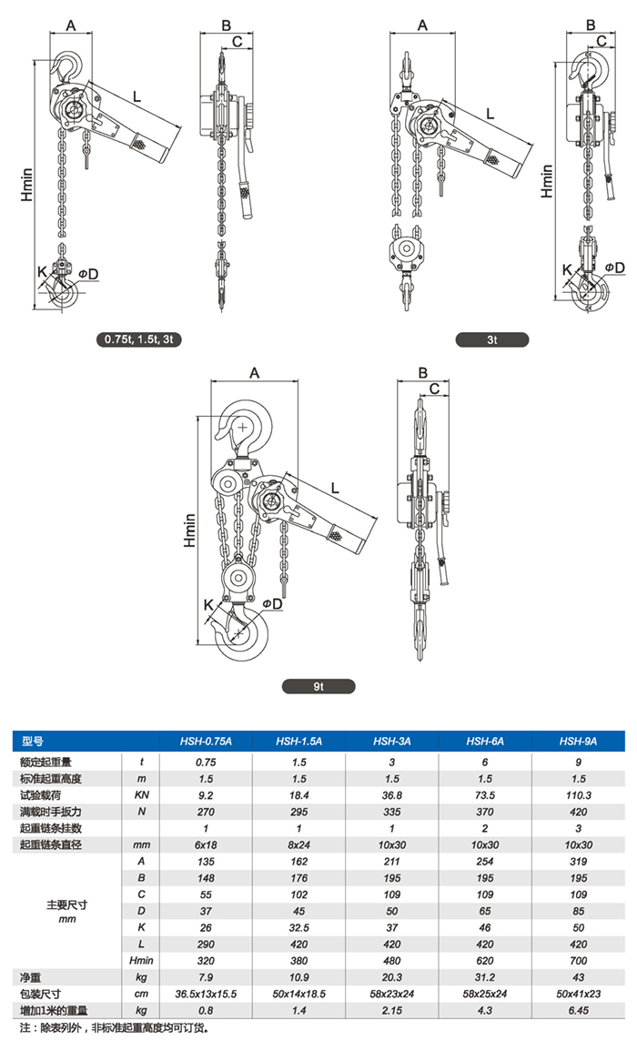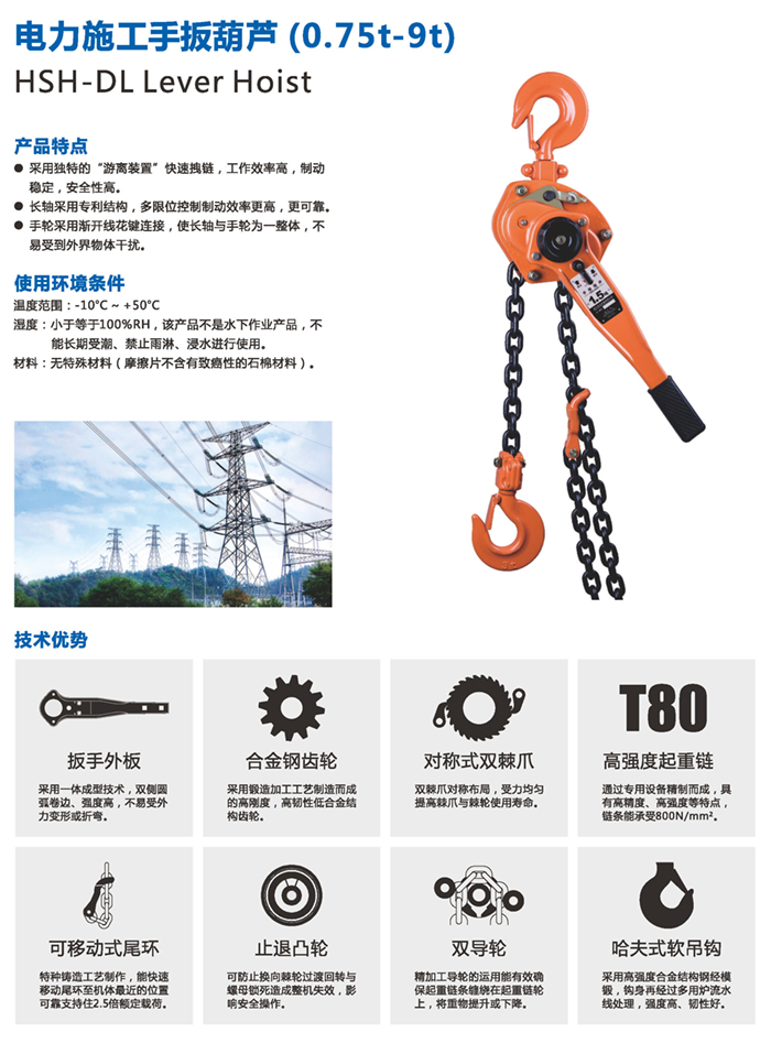 8.起重链条是特殊合金钢制作并经过热处理,不能私自进行焊接或改装。